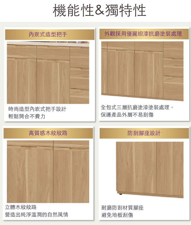 商品介紹 | 【綠家居】班尼 時尚2.6尺雲紋石面高餐櫃組合 橡木紋色系+現代簡約風格+安心材質製造,整體採用防蛀木心板+防潮耐磨腳座+五金滑軌結構+2cm雲紋石面板等安心材質製造,產品外層採用防潮耐磨噴漆處理搭配二抽屜+開門櫃+開放式收納層格等收納空間設計,全由專人配送到家,專業安心服務,替你省下更多時間! 【商品特色】 橡木紋色系+現代簡約風格+安心材質製造,使用放心+搭配居家更便利 採用防蛀木心板+防潮耐磨腳座+五金滑軌結構+2cm雲紋石面板等安心材質製造 產品外層採用防潮耐磨噴漆處理 搭配採用二抽屜+開門櫃+開放式收納層格等收納空間設計 此商品不需要DIY組立,此商品為組立後之成品 品質保證、專業設計、貼心服務 全由專人配送到家,專業安心服務,替您省下更多時間 |