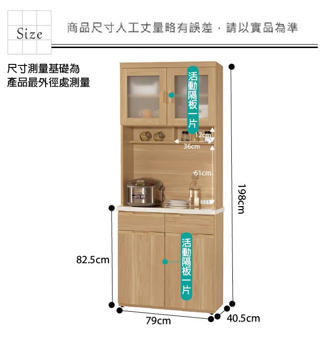 材質 | ◆產品名稱: 【綠家居】班尼 時尚2.6尺雲紋石面高餐櫃組合 尺寸:(寬)79x(深)40.5x(高)198/公分 ◆材質: 材質:防蛀木心板+防潮耐磨腳座+五金滑軌結構+2cm雲紋石面板 噴漆:防潮耐磨噴漆處理