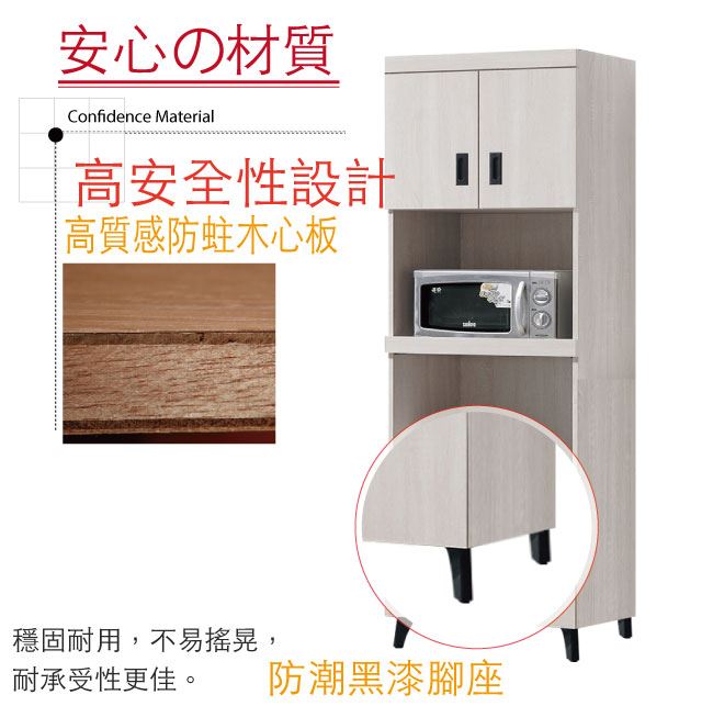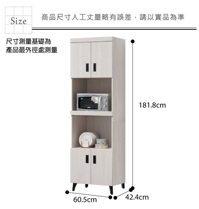 材質 | ◆產品名稱: 【綠家居】皮歐利 現代2尺四門高餐櫃/收納櫃 產品尺寸: 尺寸:(寬)60.5(深)42.4x(高)181.8/公分 ◆材質: 材質:防蛀木心板+防潮黑漆腳座+防夾手緩衝門片五金 塗漆:優利坦全包式耐磨噴漆處理