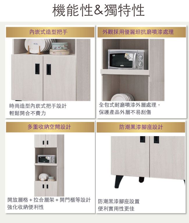 商品 介紹 | 【綠家居】皮歐利 現代2尺四門高餐櫃/收納櫃 淺橡木紋色系+現代簡約風格+安心材質製造,整體採用防蛀木心板+防潮黑漆腳座+防夾手緩衝門片五金等安心材質製造,外層採用優利坦全包式耐磨噴漆處理搭配採用開門櫃+開放式收納+拉合式層架等便利設計,全由專人配送到家,專業安心服務,替你省下更多時間! 【商品特色】 淺橡木紋色系+現代簡約風格+安心材質製造,使用放心+搭配居家更便利 採用防蛀木心板+防潮黑漆腳座+防夾手緩衝門片五金等安心材質製造 採用開門櫃+開放式收納+拉合式層架等便利設計 此商品不需要DIY組立,此商品為組立後之成品 品質保證、專業設計、貼心服務 全由專人配送到家,專業安心服務,替您省下更多時間 |