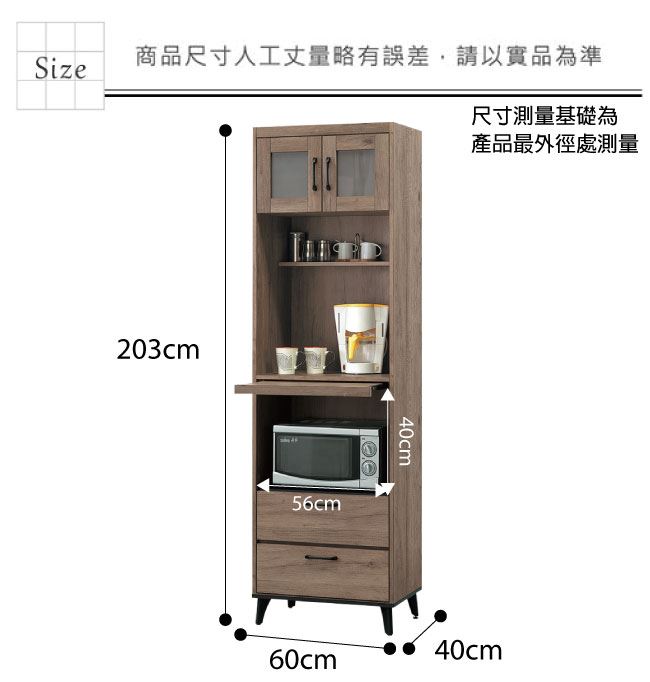 材質 | ◆產品名稱: 【綠家居】艾歐洛 現代2尺二門二抽高餐櫃/收納櫃 尺寸:(寬)601(深)40x(高)203/公分 ◆材質: 材質:防蛀木心板+五金滑軌結構+防潮黑漆腳座+防夾手緩衝門片五金 塗漆:優利坦全包式耐磨噴漆處理