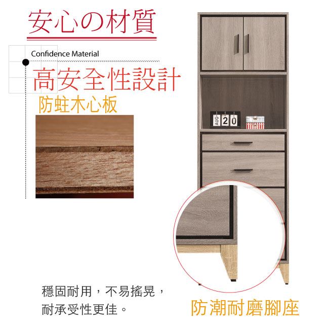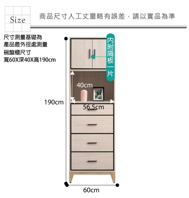 材質 | ◆產品名稱: 【綠家居】魯泰格 時尚2尺二門四抽高餐櫃(二色可選) 產品尺寸: 尺寸:(寬)60x(深)40x(高)190公分 ◆材質: 材質:防蛀木心板+防潮耐磨腳座 材質:五金滑軌結構+防夾手緩衝門片五金 塗漆:優利坦全包式耐磨噴漆處理