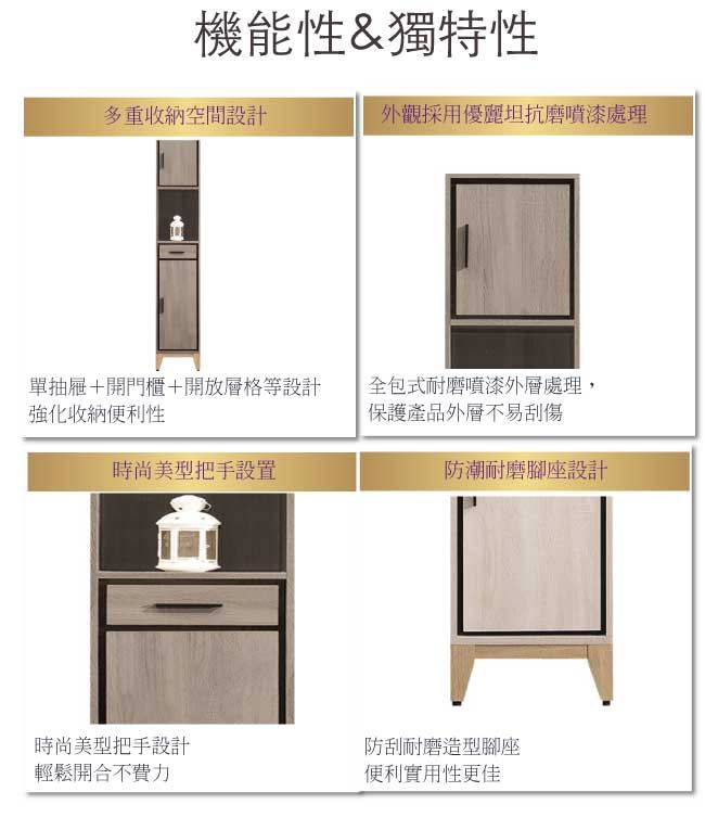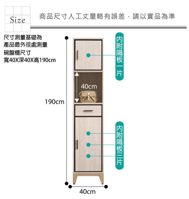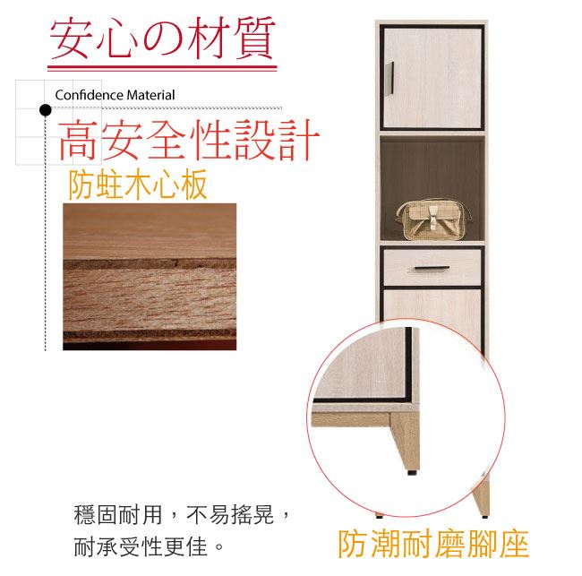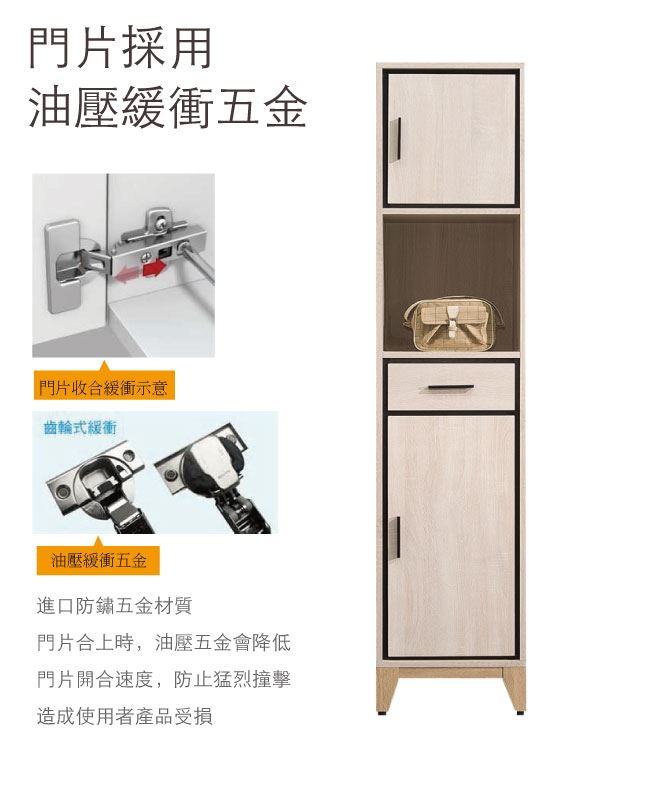 材質 | ◆產品名稱: 【綠家居】魯泰格 時尚1.3尺單門單抽高餐櫃(二色可選) 產品尺寸: 尺寸:(寬)40x(深)40x(高)190公分 ◆材質: 材質:防蛀木心板+防潮耐磨腳座 材質:五金滑軌結構+防夾手緩衝門片五金 塗漆:優利坦全包式耐磨噴漆處理