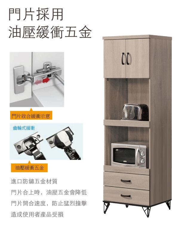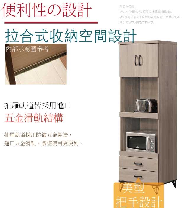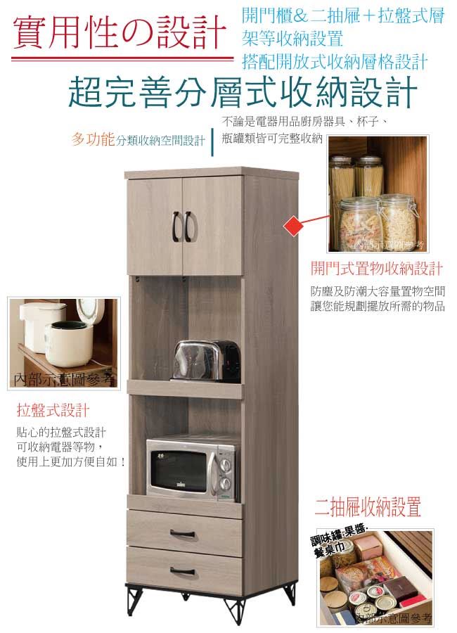 【綠家居】菲希 灰橡2尺二門二抽高餐櫃