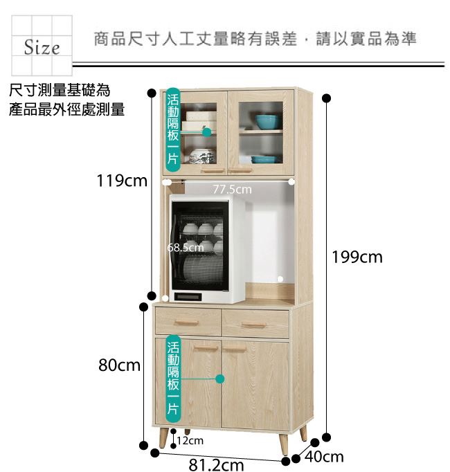 材質 | ◆產品名稱: 【綠家居】范辛頓 時尚2.6尺四門二抽餐櫃/收納櫃組合 尺寸:(寬)78x(深)39.3x(高)203.5/公分 ◆材質: 材質:防蛀木心板+防潮耐磨腳座+防夾手緩衝門片五金+五金滑軌結構 噴漆:防潮耐磨噴漆處理