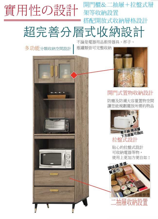 【綠家居】波依2尺二門二抽拉盤高餐櫃/收納櫃
