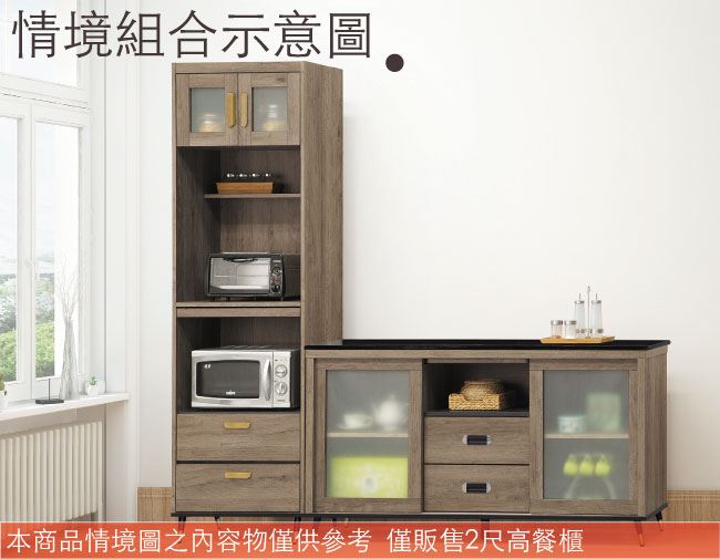 - ◆產品名稱:【綠家居】波依2尺二門二抽拉盤高餐櫃/收納櫃
