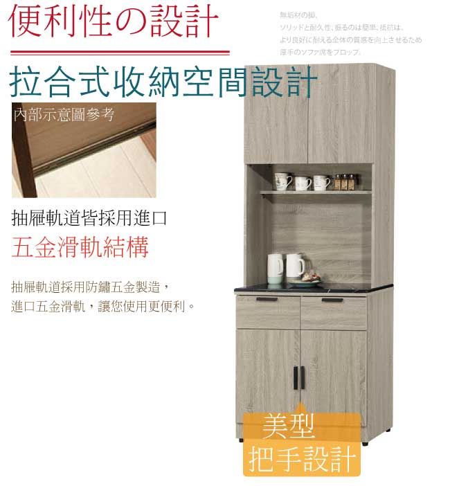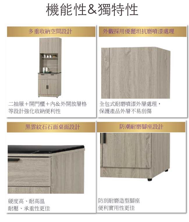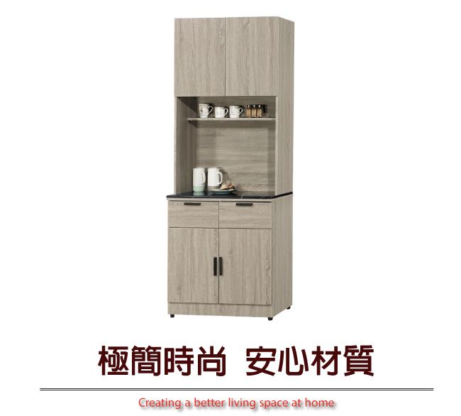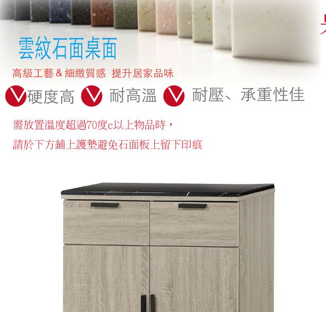 - ◆產品名稱:【綠家居】波婭2.7尺雲紋石面高餐櫃/收納櫃組合