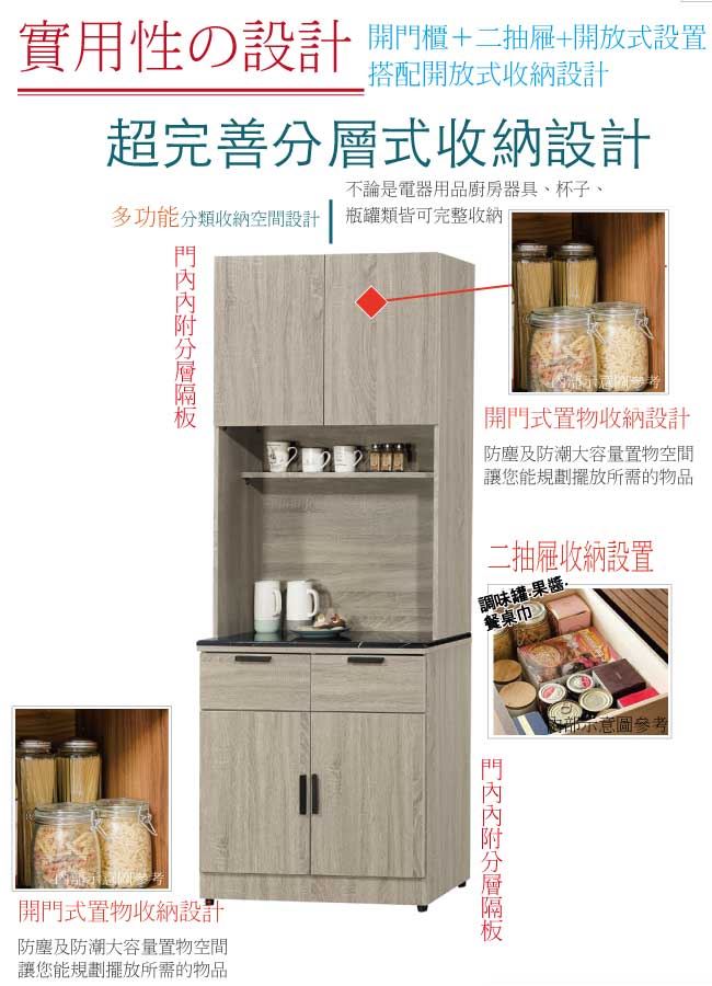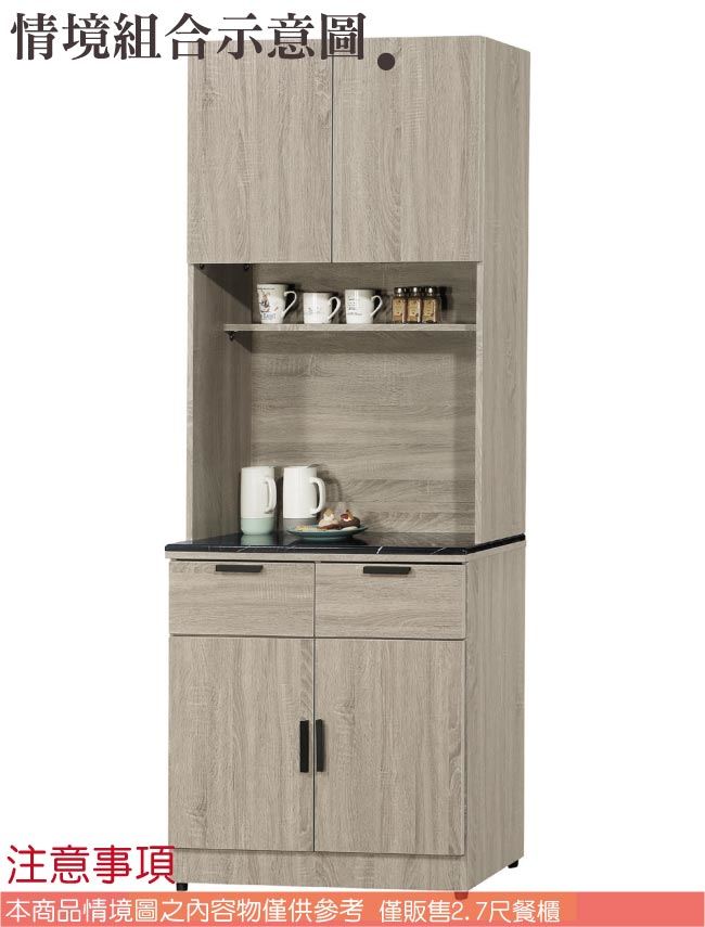 【綠家居】波婭2.7尺雲紋石面高餐櫃/收納櫃組合