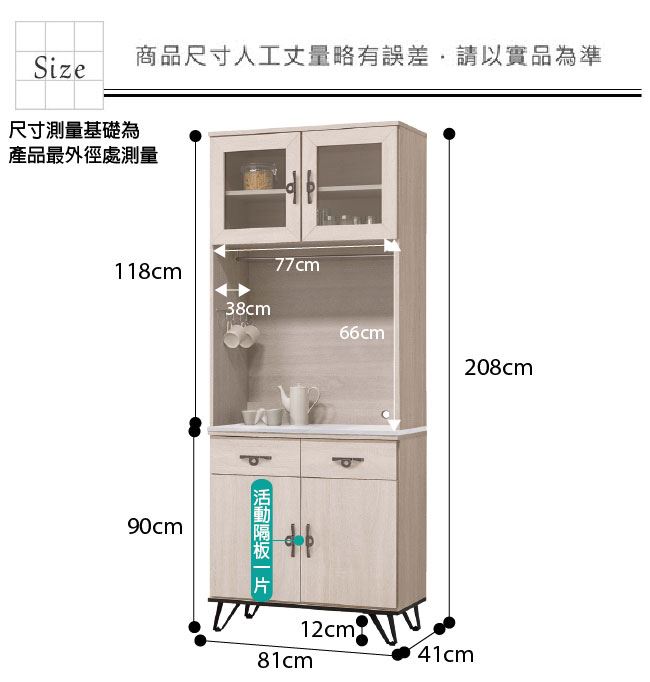 尺寸:(寬)81(深)41(高)208公分 ◆材質: 材質:防蛀木心板+黑鐵砂腳座+防夾手緩衝門片五金+五金滑軌結構+12mm高硬度岩板石桌面板 噴漆:防潮耐磨噴漆處理