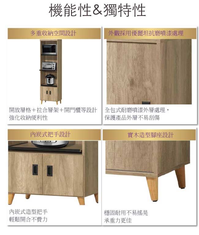 商品 介紹 | 【綠家居】天普2尺二門拉盤高餐櫃/收納櫃 原橡木紋色系+現代簡約風格+安心材質製造,整體採用防蛀木心板+防潮實木腳座+防夾手緩衝門片五金等安心材質製造,產品外層採用防潮耐磨噴漆處理搭配採用開門櫃+拉盤層架+開放層格等空間設計,全由專人配送到家,專業安心服務,替你省下更多時間! 【商品特色】 原橡木紋色系+現代簡約風格+安心材質製造,使用放心+搭配居家更便利 採用防蛀木心板+防潮實木腳座+防夾手緩衝門片五金等安心材質製造 產品外層採用防潮耐磨噴漆處理 搭配採用開門櫃+拉盤層架+開放層格等空間設計 此商品不需要DIY組立,此商品為組立後之成品 全由專人配送到家,專業安心服務,替您省下更多時間 |