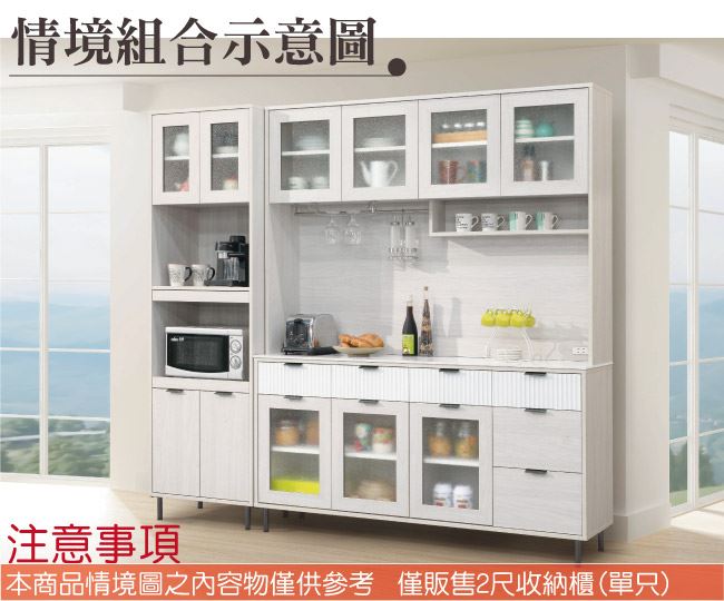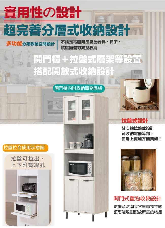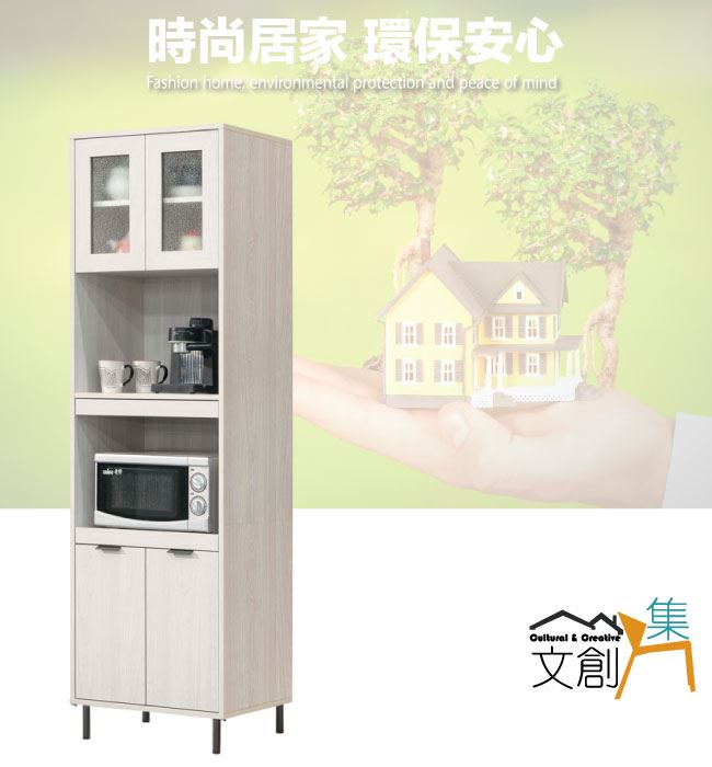 【綠家居】剛果淺橡2尺拉盤四門高餐櫃/收納櫃