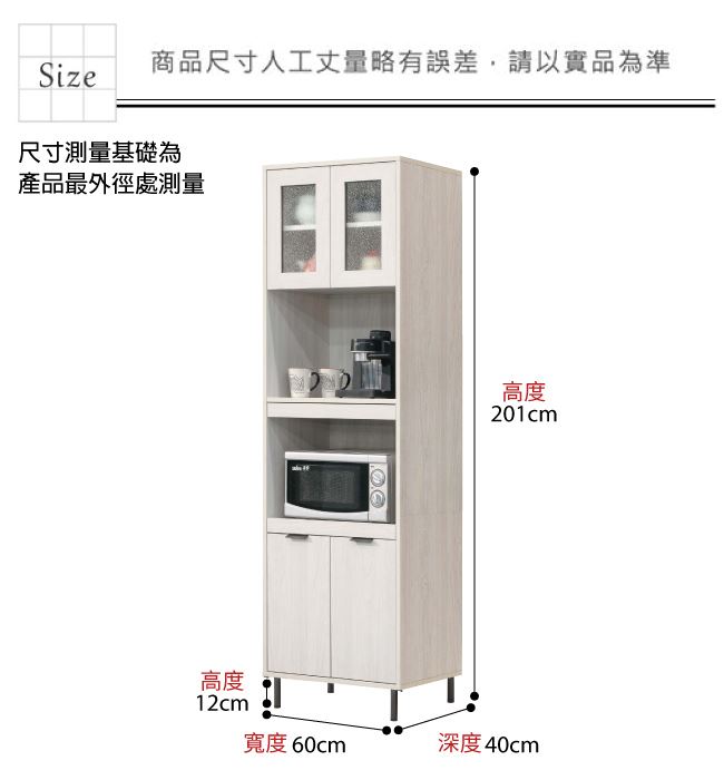 材質 | ◆產品名稱:【綠家居】剛果淺橡2尺拉盤四門高餐櫃/收納櫃 尺寸:(寬)60x(深)40(高)201公分 ◆材質: 材質:防蛀木心板+防鏽黑漆五金腳座(12cm高) 噴漆:防潮耐磨噴漆處理