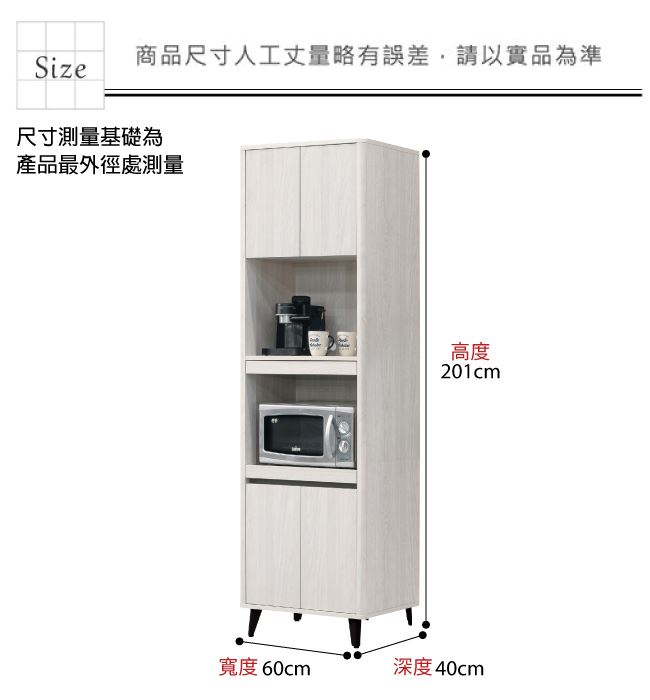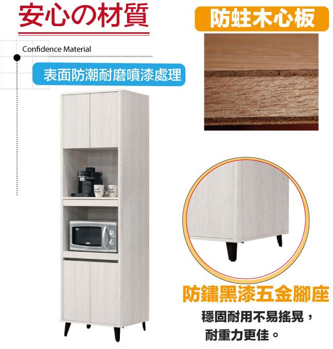 材質 | ◆產品名稱:【綠家居】魁北克2尺拉盤四門高餐櫃/收納櫃 尺寸:(寬)60x(深)40(高)201公分 ◆材質: 材質:防蛀木心板+防鏽黑漆五金腳座 噴漆:防潮耐磨噴漆處理