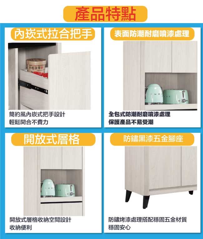 【綠家居】卡蘿莉2尺三門多功能高餐櫃