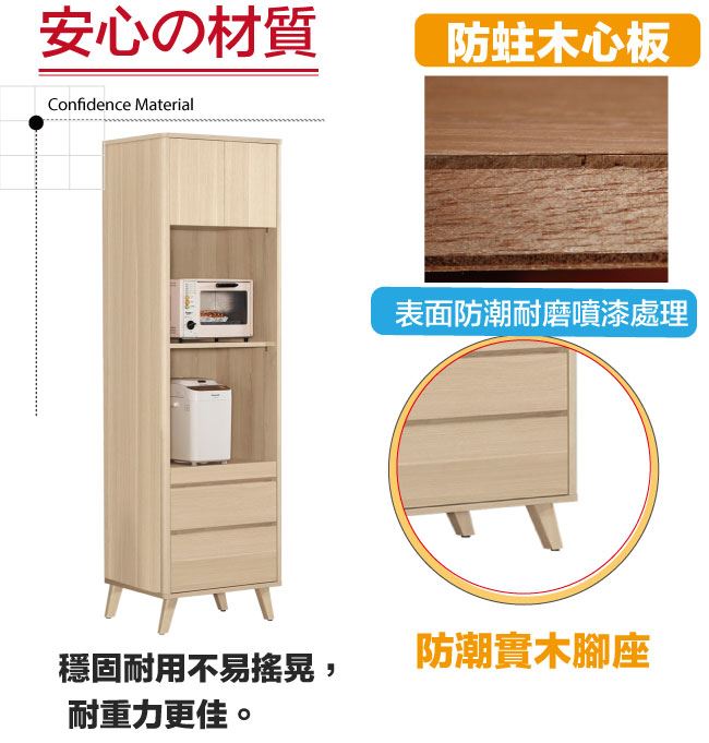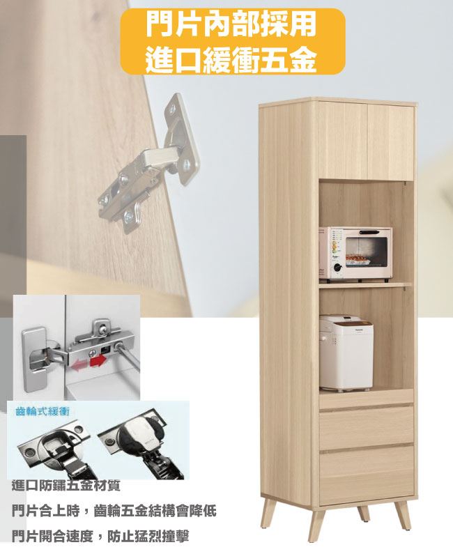 材質 | ◆產品名稱:【綠家居】哈樂2尺二門二抽拉盤高餐櫃 餐櫃尺寸:(寬)60x(深)40(高)194公分 ◆材質: 材質:防蛀木心板+防潮實木腳座+防夾手緩衝門片五金+五金滑軌結構 噴漆:防潮耐磨噴漆處理