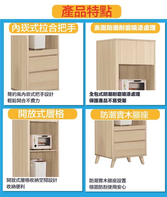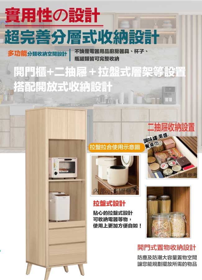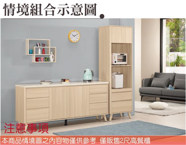 【綠家居】哈樂2尺二門二抽拉盤高餐櫃