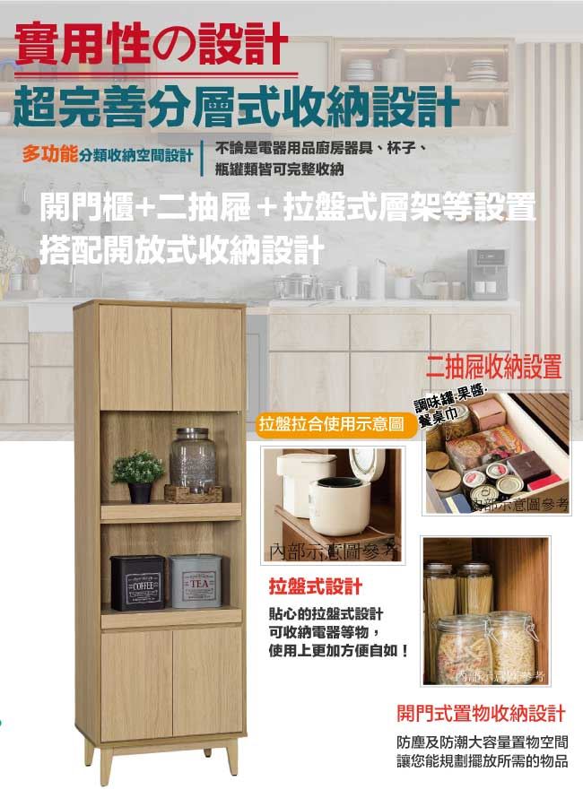 【綠家居】神奈川2尺四門拉盤高餐櫃/收納櫃