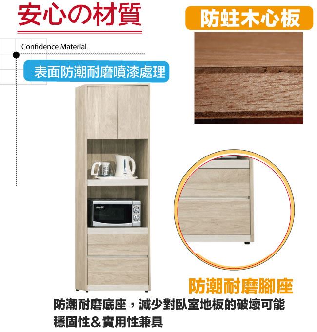 材質 | ◆產品名稱:【綠家居】羅娜2尺二門二抽拉盤高餐櫃 餐櫃尺寸:(寬)60x(深)40(高)196.4公分 ◆材質: 材質:防蛀木心板+防潮耐磨腳座+防夾手緩衝門片五金+五金滑軌結構 噴漆:防潮耐磨噴漆處理