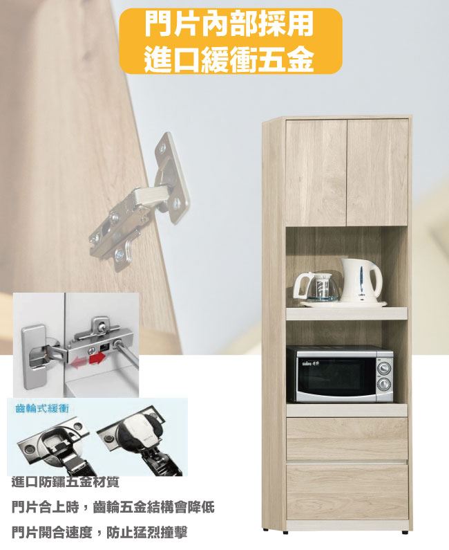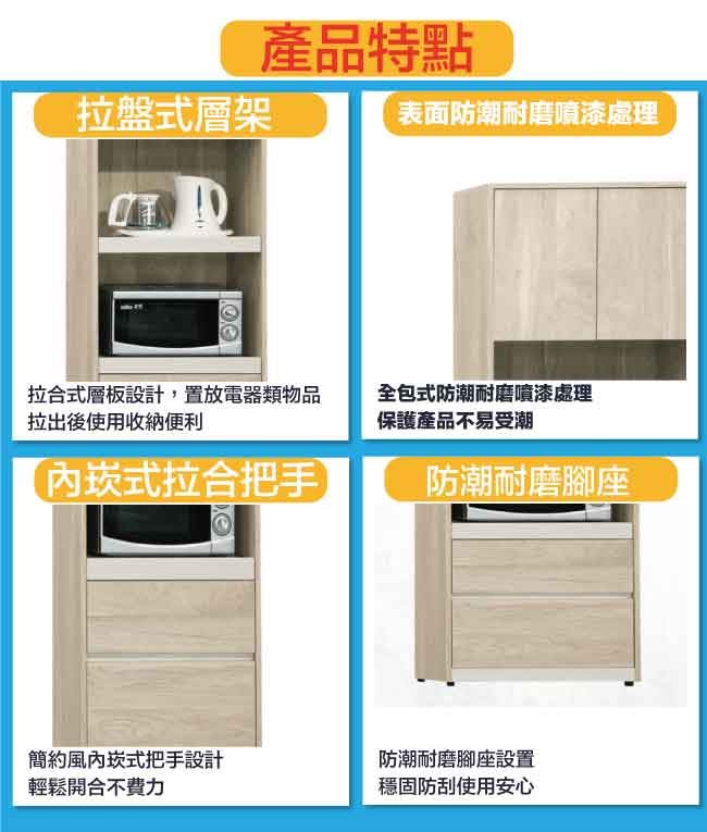 商品 介紹 | 【綠家居】羅娜2尺二門二抽拉盤高餐櫃 木紋雙色系+現代簡約風格+安心材質製造,整體採用防蛀木心板+防潮耐磨腳座+五金滑軌結構+防夾手緩衝門片五金等安心材質製造,產品外層採用防潮耐磨噴漆處理搭配採用開門櫃+二抽屜+拉盤式層架+內&外開放式層格等收納空間設計,全由專人配送到家,專業安心服務,替你省下更多時間! 【商品特色】 木紋雙色系+現代簡約風格+安心材質製造,使用放心+搭配居家更便利 採用防蛀木心板+防潮耐磨腳座+五金滑軌結構+防夾手緩衝門片五金等安心材質製造 產品外層採用防潮耐磨噴漆處理 採用開門櫃+二抽屜+拉盤式層架+內&外開放式層格等收納空間設計 此商品不需要DIY組立,此商品為組立後之成品 品質保證、專業設計、貼心服務 全由專人配送到家,專業安心服務,替您省下更多時間 |