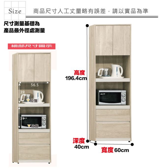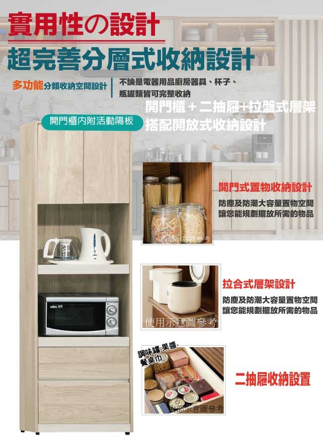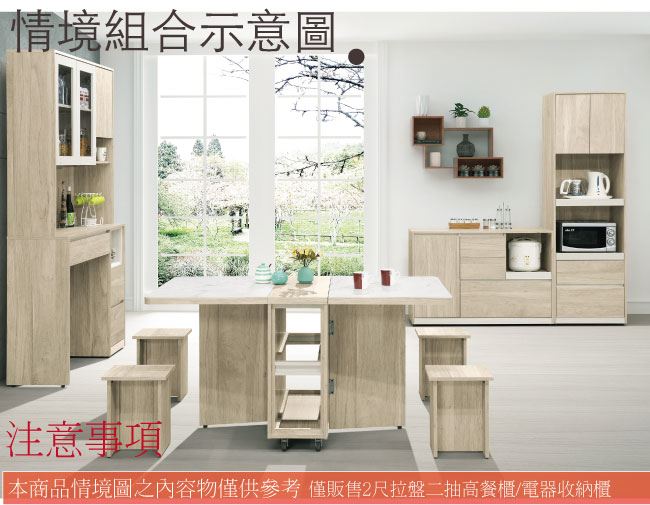 【綠家居】羅娜2尺二門二抽拉盤高餐櫃