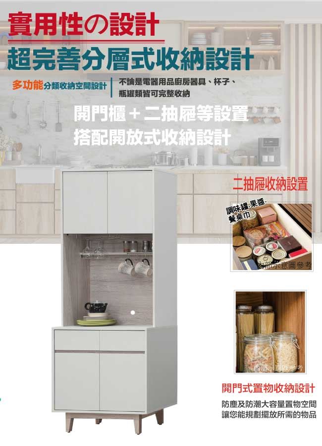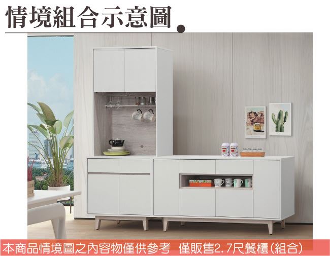 【綠家居】卡地2.7尺四門二抽高餐櫃組合