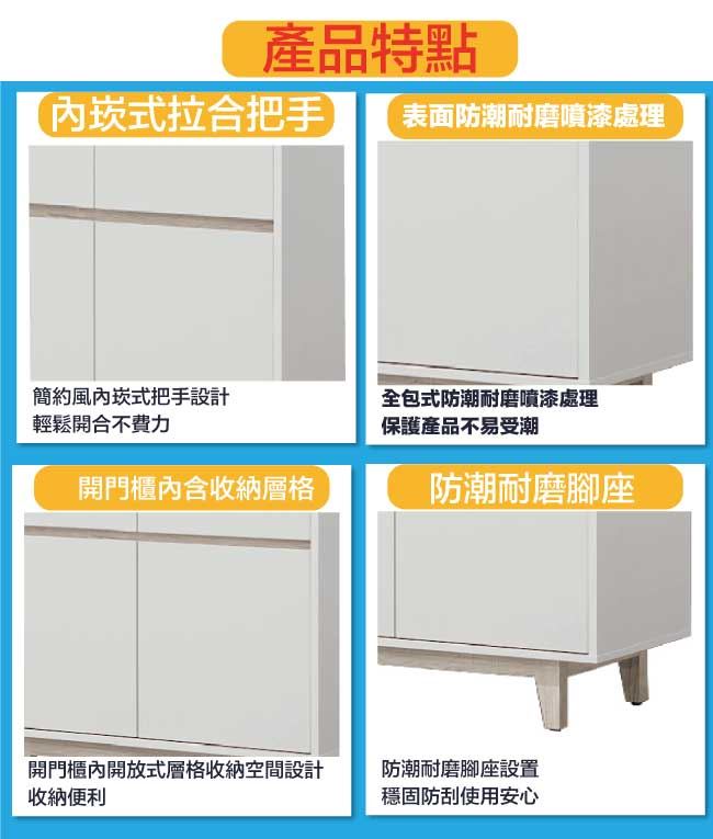 商品 介紹 | 【綠家居】卡地2.7尺四門二抽高餐櫃組合 淺橡木紋色系+現代簡約風格+安心材質製造,使用放心+搭配居家更便利,整體採用防蛀木心板+防潮耐磨腳座+防夾手緩衝門片五金+五金滑軌結構等材質搭配外層採用優莉坦耐磨全包式噴漆處理 ,採用開門櫃+二抽屜+內&外開放層格等收納空間設計,全由專人配送到家,專業安心服務,替你省下更多時間! 【商品特色】 淺橡木紋色系+現代簡約風格+安心材質製造,使用放心+搭配居家更便利 防蛀木心板+防潮耐磨腳座+防夾手緩衝門片五金+五金滑軌結構等材質 採用開門櫃+二抽屜+內&外開放層格等收納空間設計 此商品不需要DIY組立,此商品為組立後之成品 品質保證、專業設計、貼心服務 全由專人配送到家,專業安心服務,替您省下更多時間 |