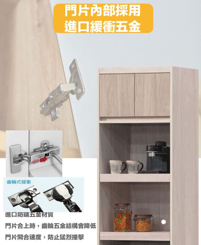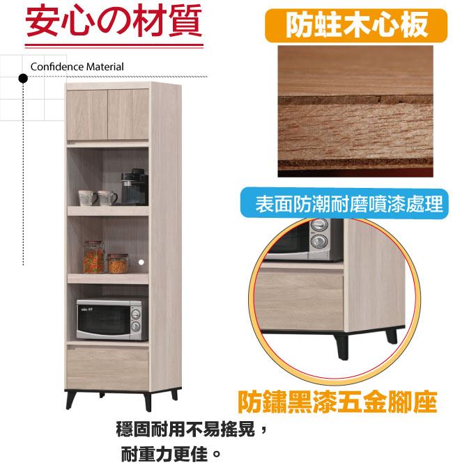 材質 | ◆產品名稱:【綠家居】雅洛2尺二門單抽拉盤高餐櫃 尺寸:(寬)60x(深)40(高)203公分 ◆材質: 材質:防蛀木心板+防鏽五金腳座+五金滑軌結構+防夾手緩衝門片五金 噴漆:防潮耐磨噴漆處理