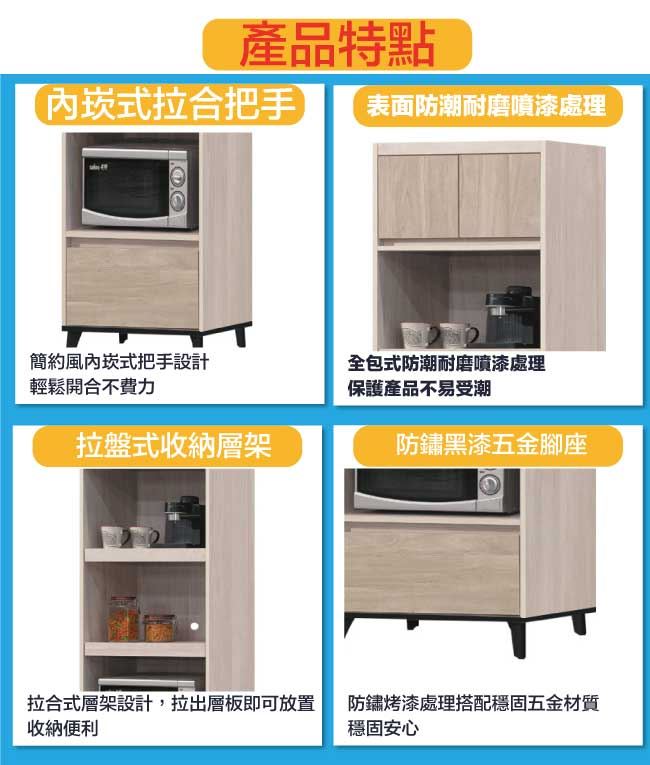 商品 介紹 | 【綠家居】雅洛2尺二門單抽拉盤高餐櫃 木紋雙色系+現代簡約風格+安心材質製造,使用放心+搭配居家更便利,整體採用防蛀木心板+防鏽五金腳座+防夾手緩衝門片五金+五金滑軌結構等材質搭配外層採用優莉坦耐磨全包式噴漆處理 ,採用開門櫃+單抽屜+拉盤式層架+內&外開放層格等收納空間設計,全由專人配送到家,專業安心服務,替你省下更多時間! 【商品特色】 木紋雙色系+現代簡約風格+安心材質製造,使用放心+搭配居家更便利 防蛀木心板+防鏽五金腳座+防夾手緩衝門片五金+五金滑軌結構等材質 採用開門櫃+單抽屜+拉盤式層架+內&外開放層格等收納空間設計 此商品不需要DIY組立,此商品為組立後之成品 品質保證、專業設計、貼心服務 全由專人配送到家,專業安心服務,替您省下更多時間 |