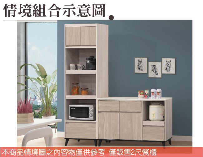 【綠家居】雅洛2尺二門單抽拉盤高餐櫃