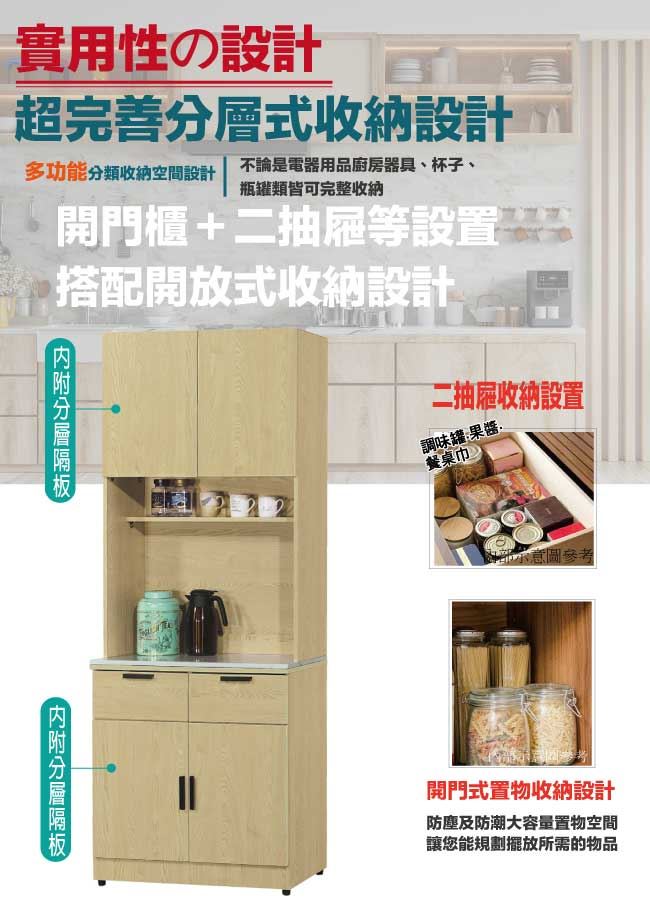 【綠家居】路思樂2.7尺雲紋石面高餐櫃組合