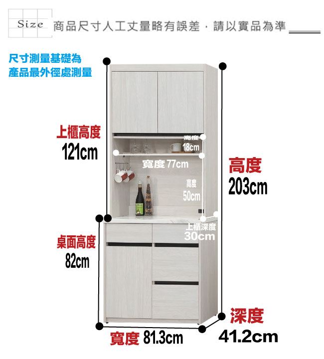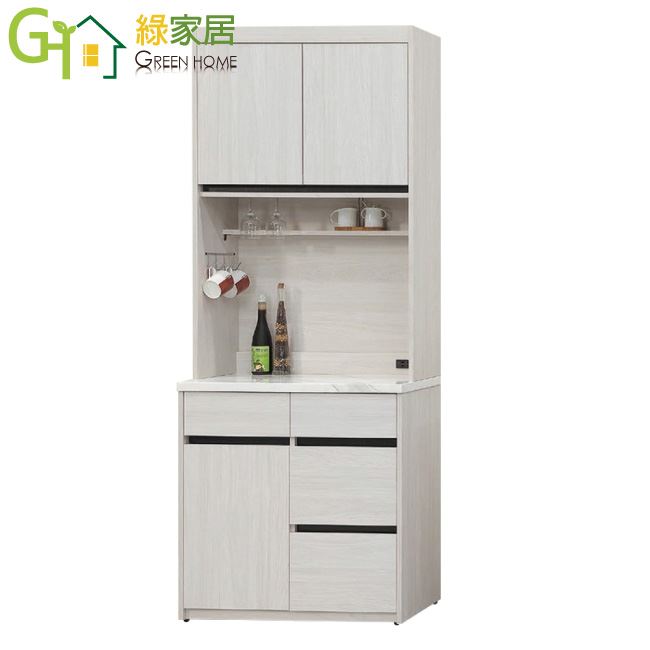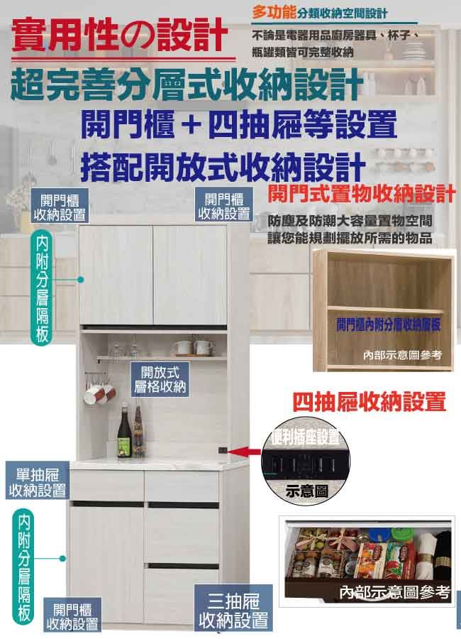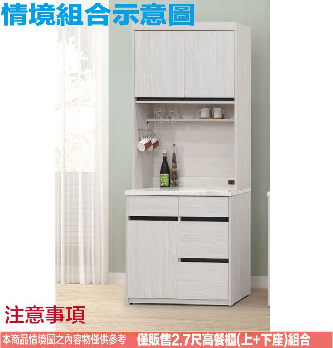 【綠家居】卡奇里白榆2.7尺三門四抽高餐櫃組合