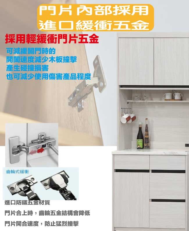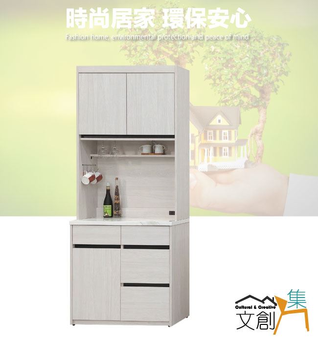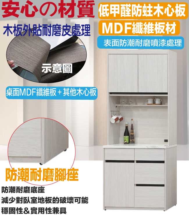 商 品 介 紹 | 【綠家居】卡奇里白榆2.7尺三門四抽高餐櫃組合 白榆木紋色系+現代簡約風格+安心材質製造,整體採用防蛀木心板+防潮MDF纖維板(桌面板材質)+防潮耐磨腳座+五金滑軌結構+仿雲紋石面紋路木質桌面板+防夾手緩衝門片五金等安心材質製造,產品外層採用防潮耐磨噴漆處理搭配採用開門櫃+四抽屜+內&外開放層格等收納空間設計,全由專人配送到家,專業安心服務,替你省下更多時間! 【商品特色】 白榆木紋色系+現代簡約風格+安心材質製造,使用放心+搭配居家更便利 採用防蛀木心板+防潮MDF纖維板(桌面板材質)+防潮耐磨腳座+五金滑軌結構+仿雲紋石面紋路木質桌面板+防夾手緩衝門片五金等安心材質製造 產品外層採用防潮耐磨噴漆處理 搭配採用開門櫃+四抽屜+內&外開放層格等收納空間設計 此商品不需要DIY組立,此商品為組立後之成品 全由專人配送到家,專業安心服務,替您省下更多時間