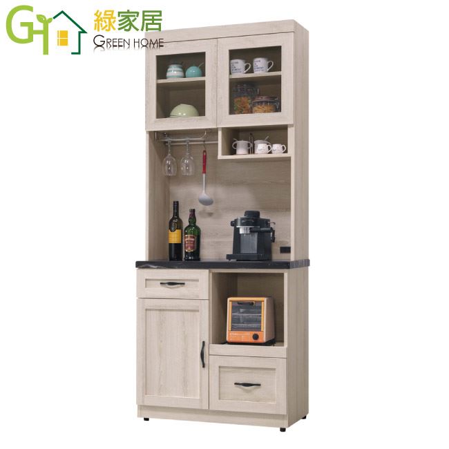 【綠家居】梅藍2.7尺雲紋石面高餐櫃/收納櫃組合