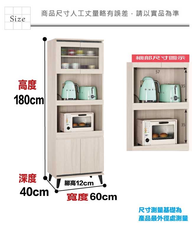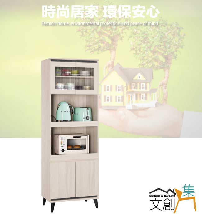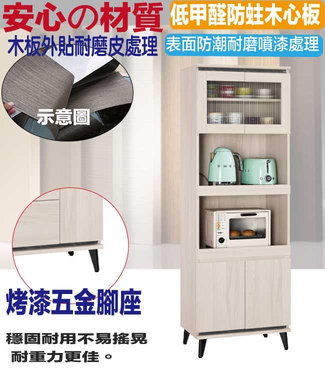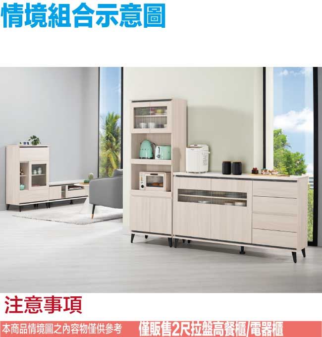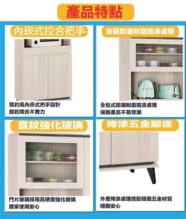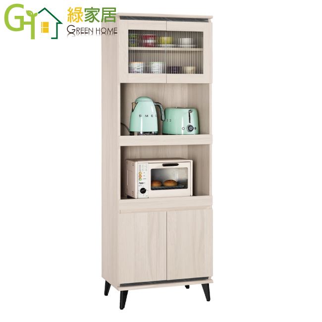 【綠家居】納莉爾2尺開門玻璃拉盤高餐櫃