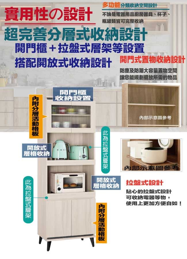 商 品 介 紹 | 【綠家居】納莉爾2尺開門玻璃拉盤高餐櫃 淺橡木紋色系+現代簡約風格+安心材質製造,整體採用防蛀木心板+烤漆金屬腳座+五金滑軌結構+5mm直紋強化玻璃+防夾手緩衝門片五金等安心材質製造,產品外層採用防潮耐磨噴漆處理搭配採用開門櫃+拉盤式層架+內&外開放層格等收納空間設計,全由專人配送到家,專業安心服務,替你省下更多時間! 【商品特色】 淺橡木紋色系+現代簡約風格+安心材質製造,使用放心+搭配居家更便利 採用防蛀木心板+烤漆金屬腳座+五金滑軌結構+5mm直紋強化玻璃+防夾手緩衝門片五金等安心材質製造 搭配採用開門櫃+拉盤式層架+內&外開放層格等收納空間設計 此商品不需要DIY組立,此商品為組立後之成品 品質保證、專業設計、貼心服務 全由專人配送到家,專業安心服務,替您省下更多時間