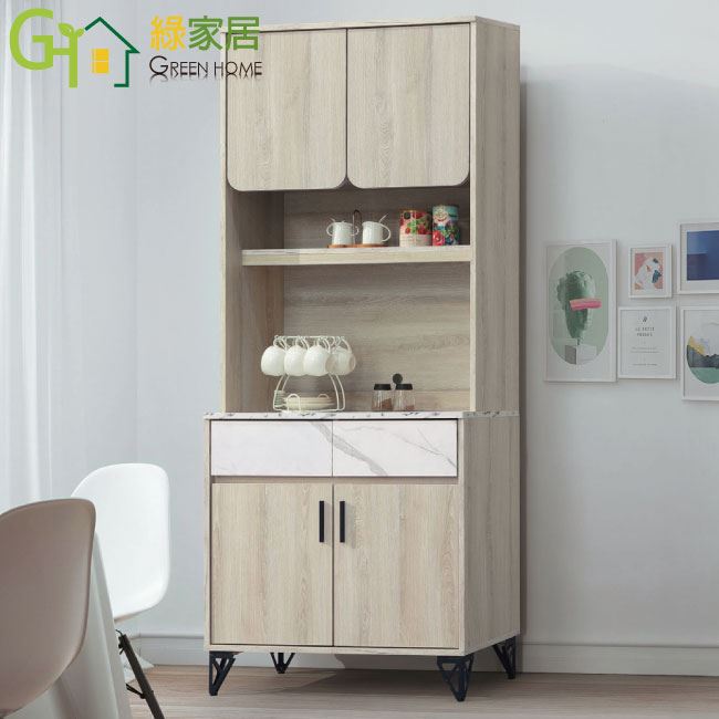 【綠家居】戴威利2.7尺開門二抽高餐櫃組合