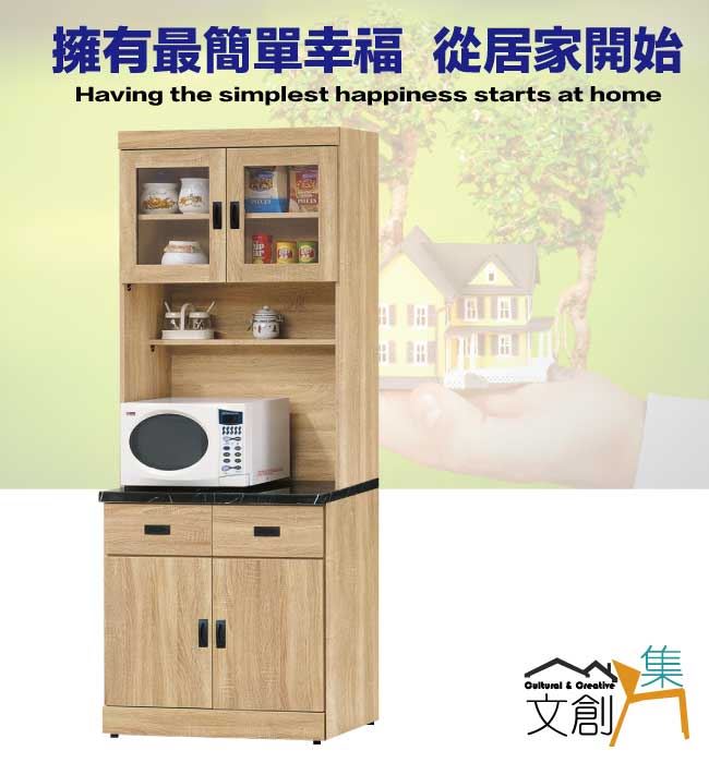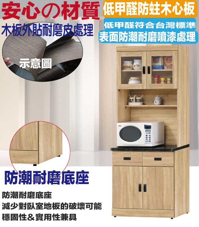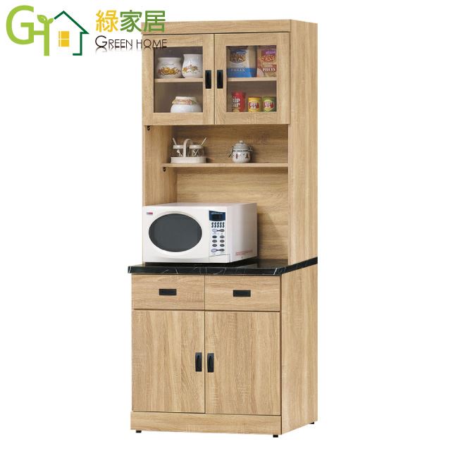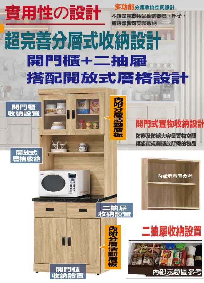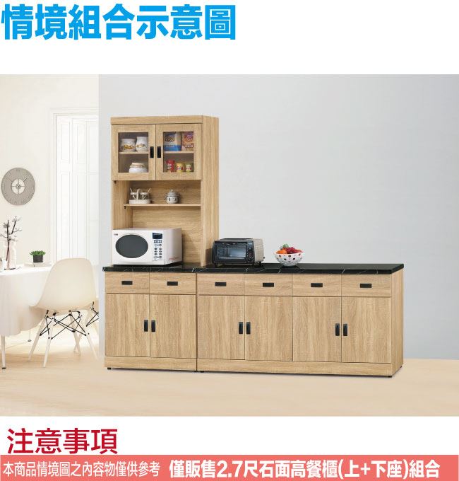 【綠家居】莫凡比2.7尺黑雲紋石面高餐櫃組合