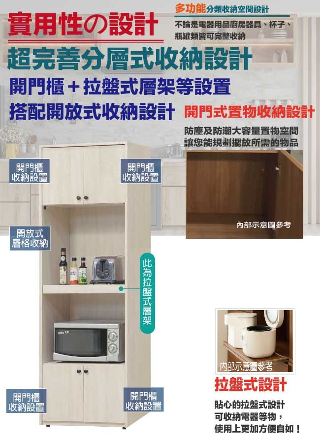 【綠家居】麥比2尺四門拉盤高餐櫃/電器櫃(二色可選)