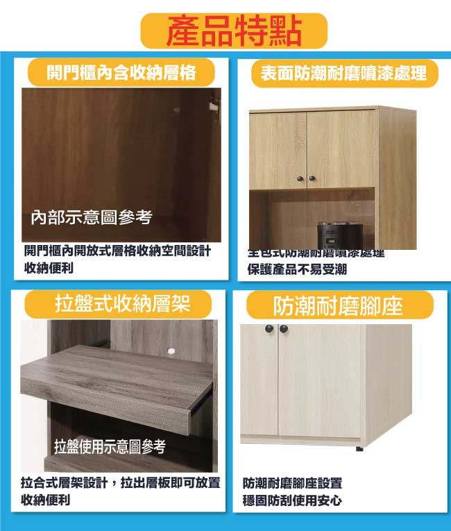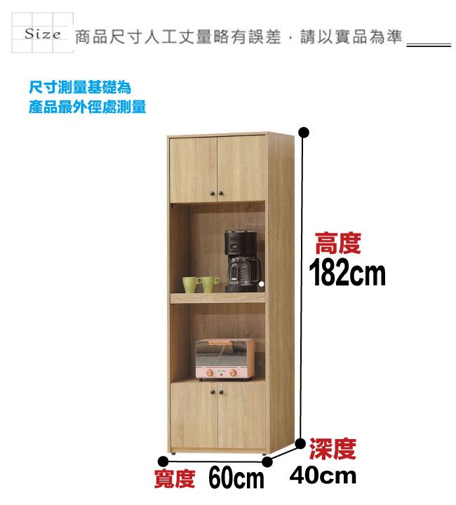 材質 | ◆產品名稱:【綠家居】麥比2尺四門拉盤高餐櫃/電器櫃(二色可選) 尺寸:(寬)60x(深)40x(高)182/公分 ◆材質: 材質:防蛀木心板+防潮耐磨腳座+防夾手緩衝門片五金 噴漆:防潮耐磨噴漆處理 |