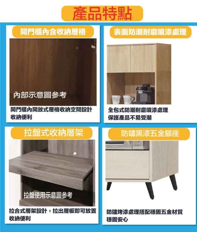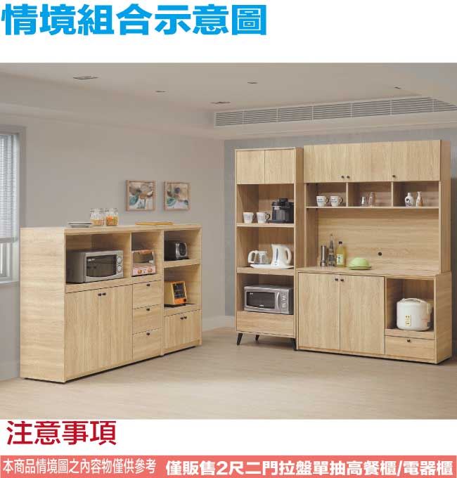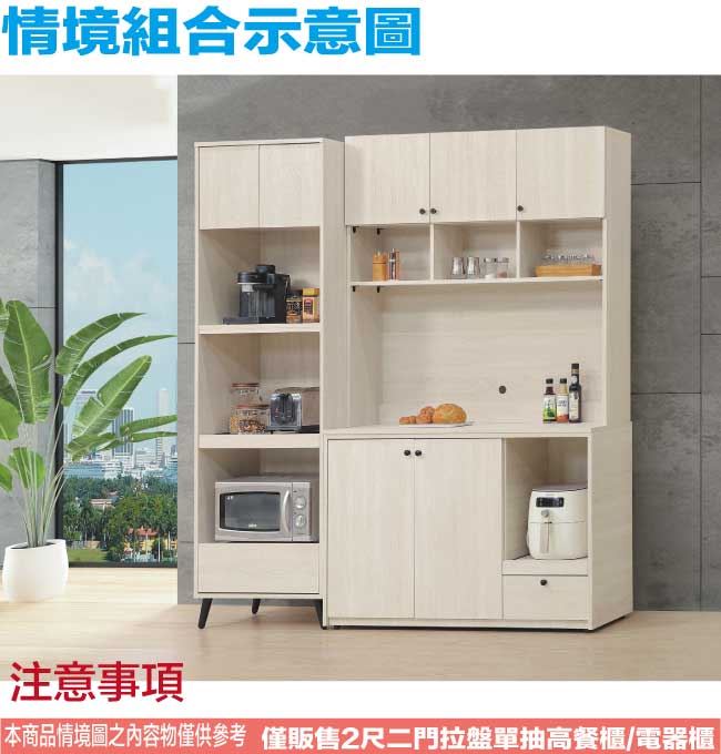 【綠家居】麥比2尺二門拉盤單抽高餐櫃/電器櫃(二色可選)