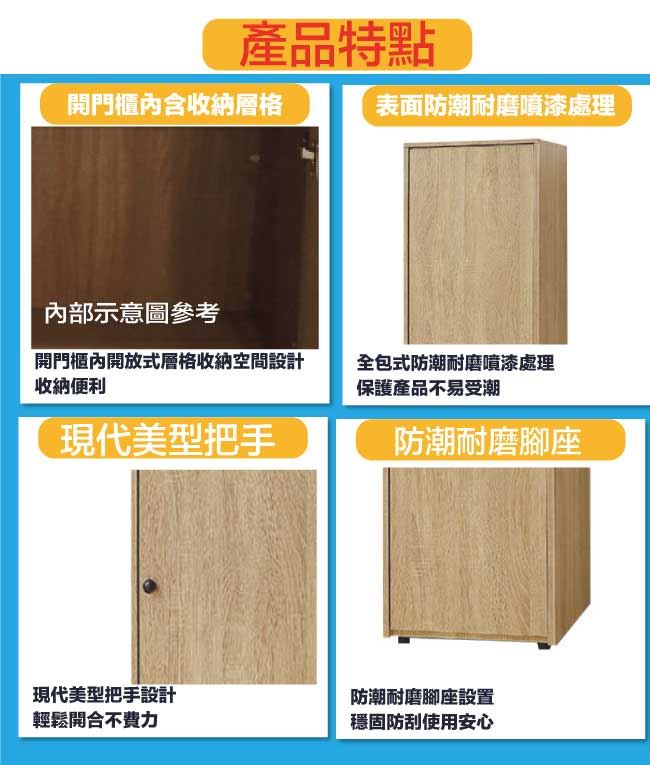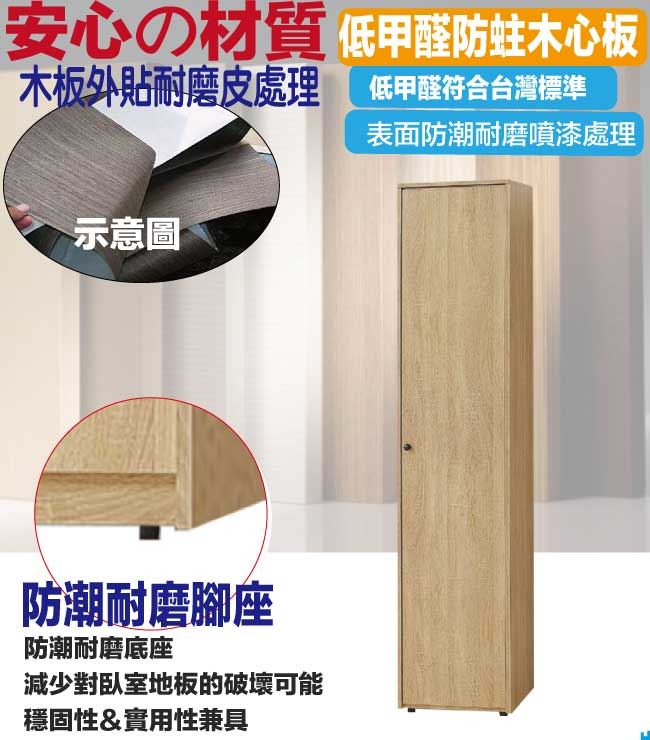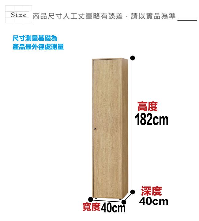材質 | ◆產品名稱:【綠家居】麥比1.3尺單門高收納櫃 尺寸:(寬)40x(深)40x(高)182/公分 ◆材質: 材質:防蛀木心板+防潮耐磨腳座+防夾手緩衝門片五金 噴漆:防潮耐磨噴漆處理 |