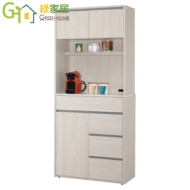 【綠家居】華爾雙色2.5尺三門四抽高餐櫃組合