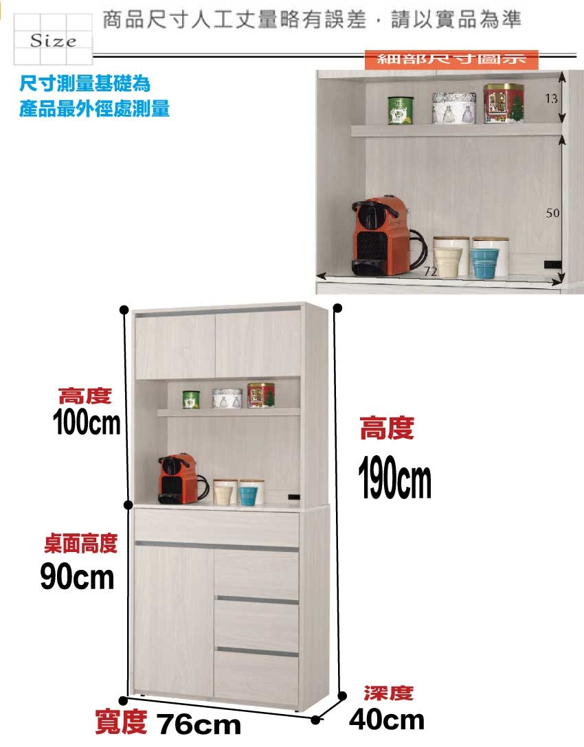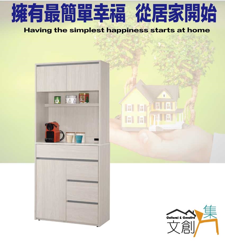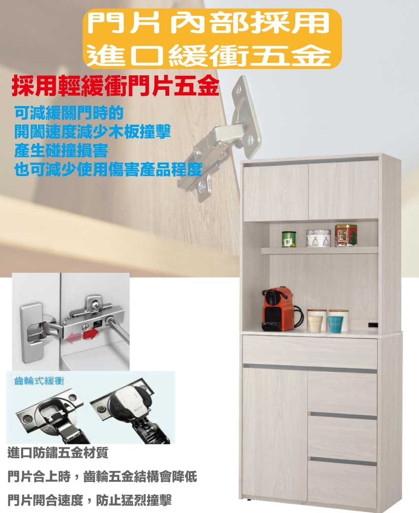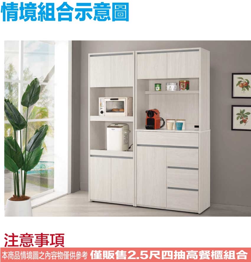- ◆產品名稱:【綠家居】華爾雙色2.5尺三門四抽高餐櫃組合