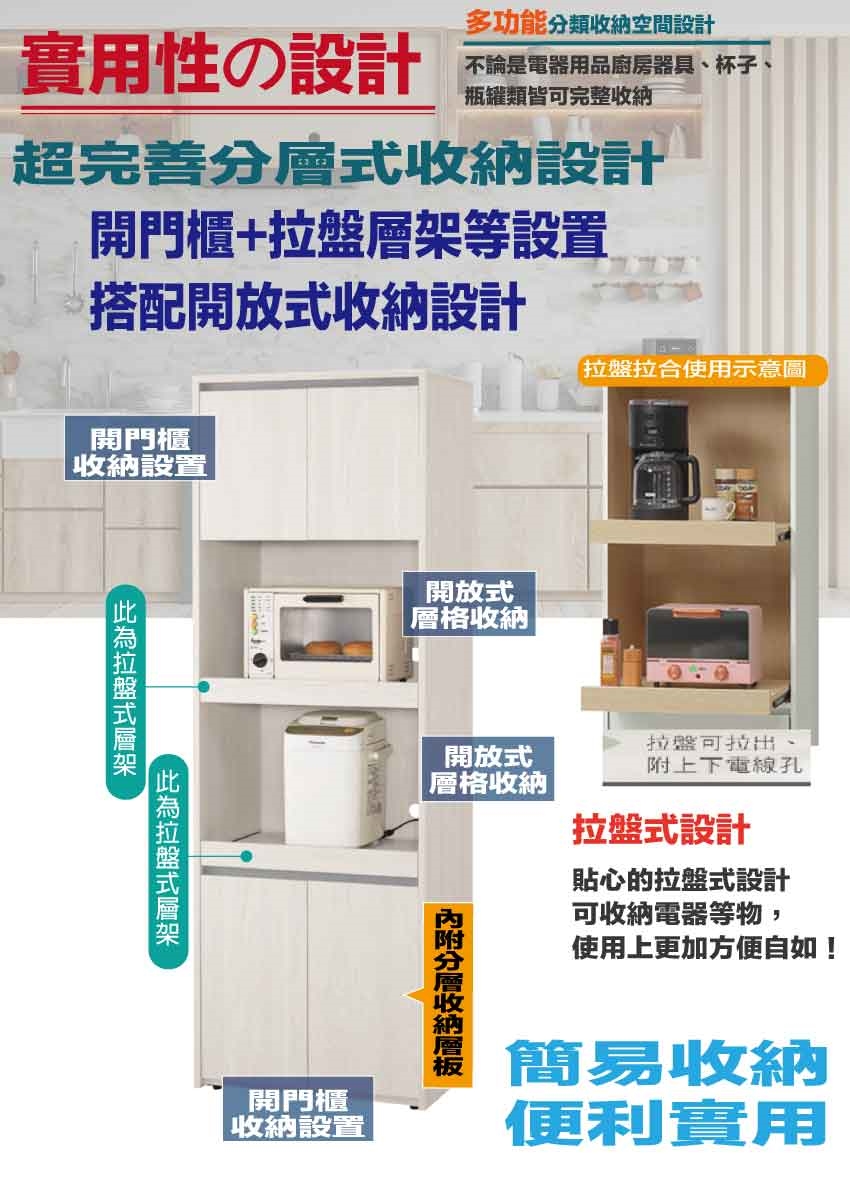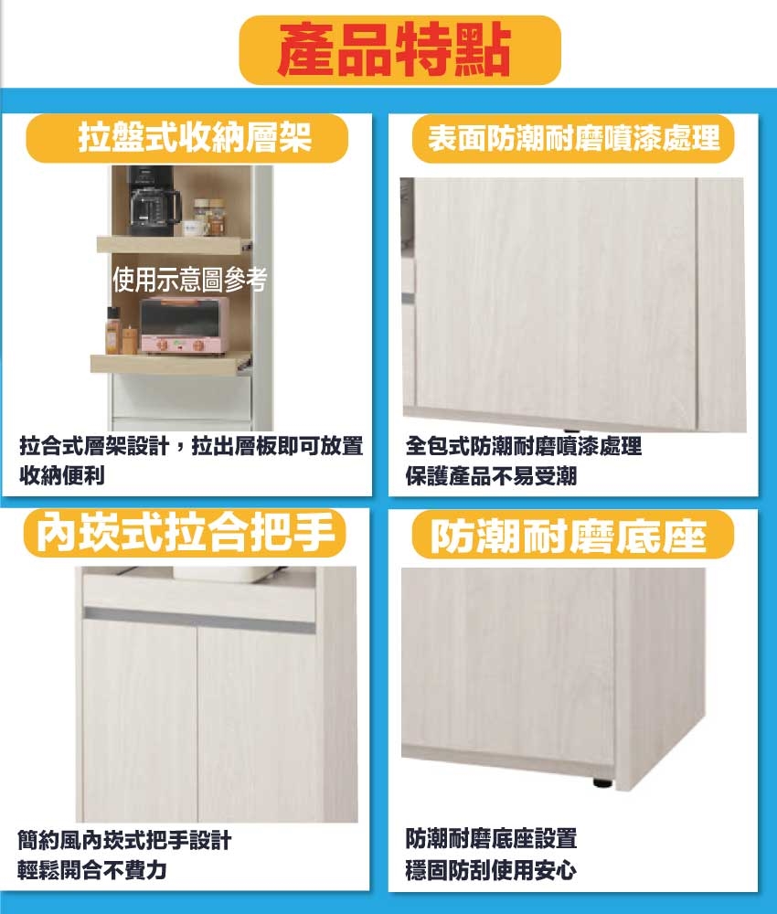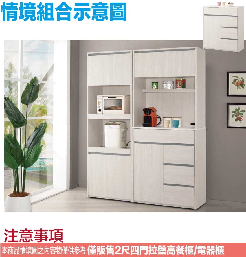 - ◆產品名稱:【綠家居】華爾雙色2尺四門雙拉盤高電器櫃/餐櫃