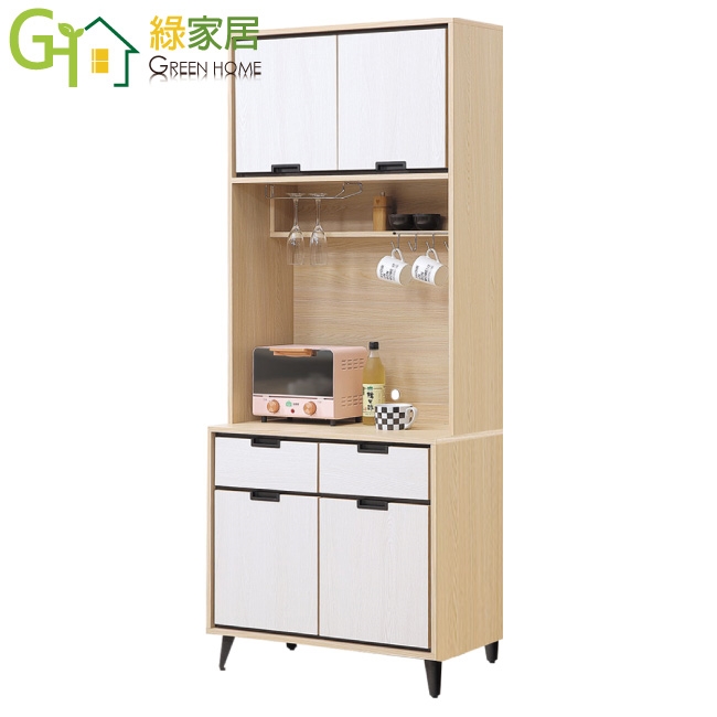 【綠家居】亞卡利雙色2.8尺四門二抽高餐櫃組合