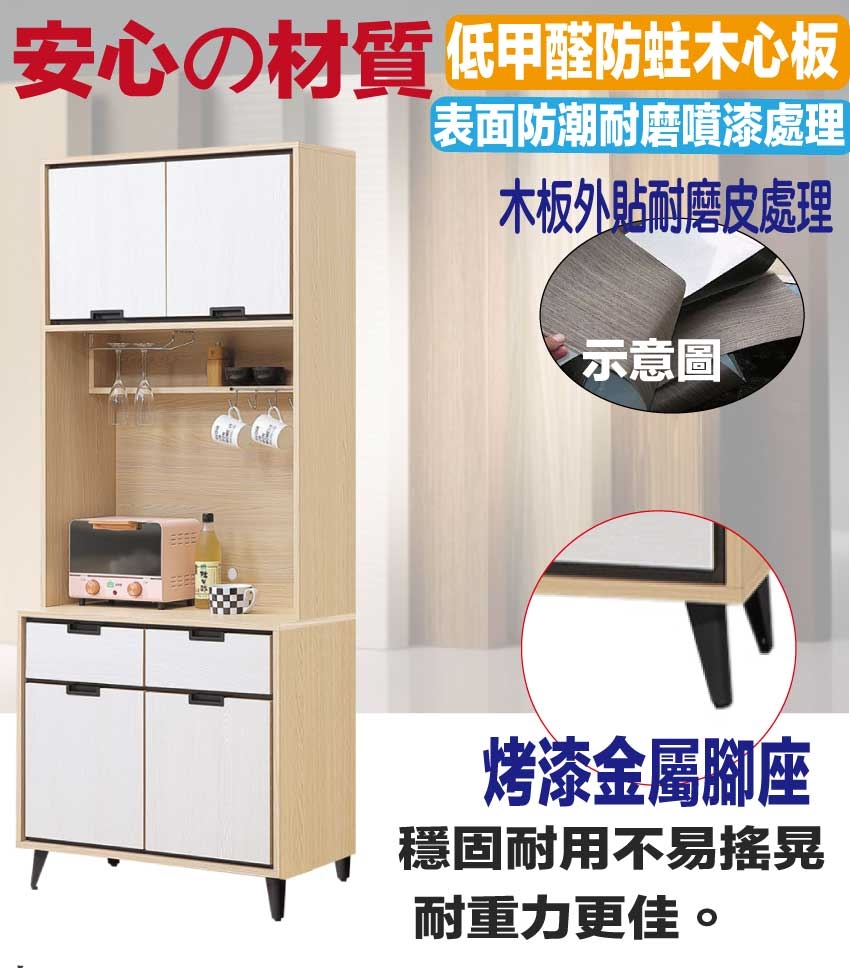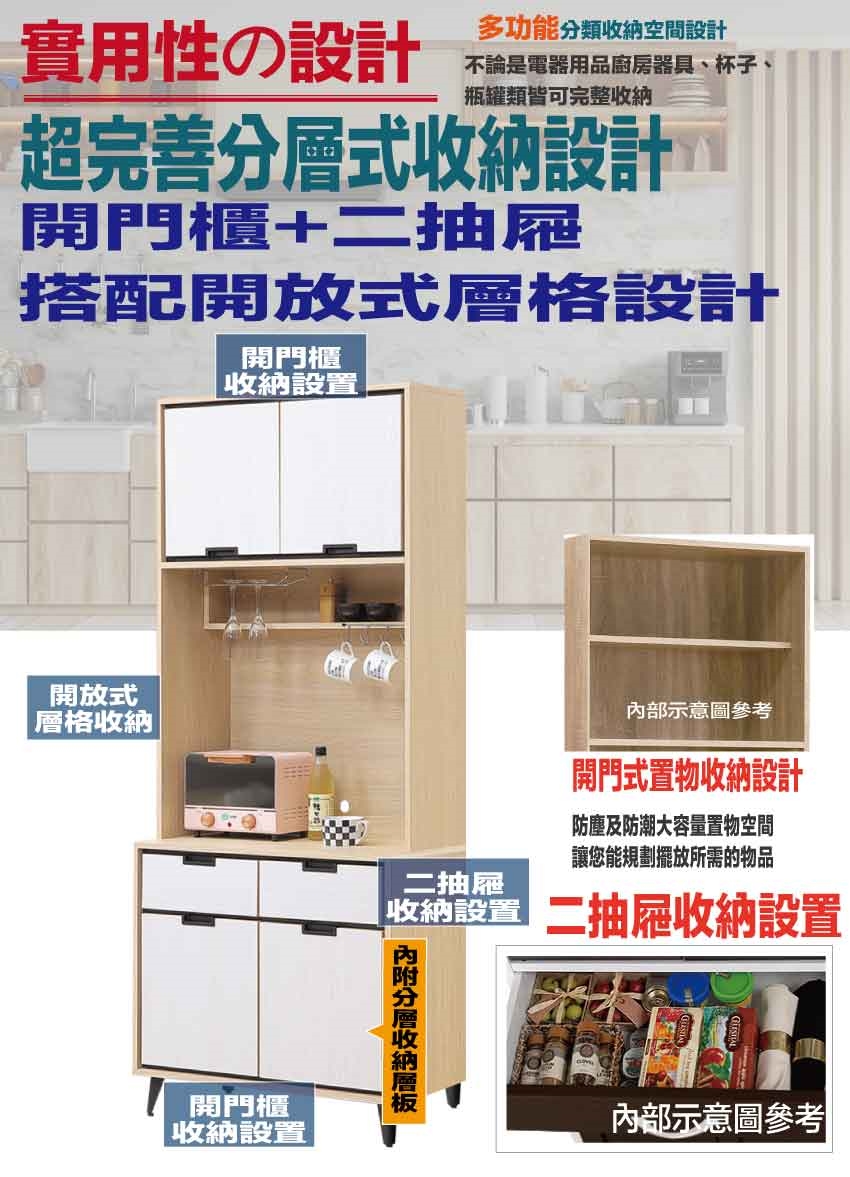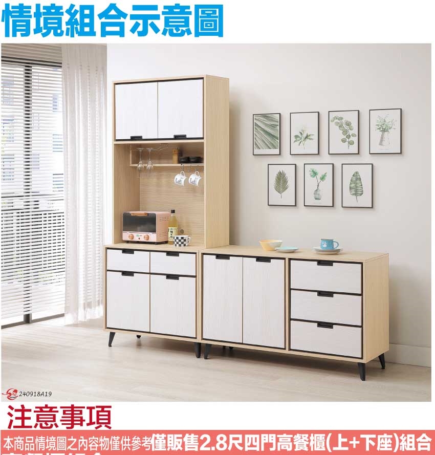 - ◆產品名稱:【綠家居】亞卡利雙色2.8尺四門二抽高餐櫃組合