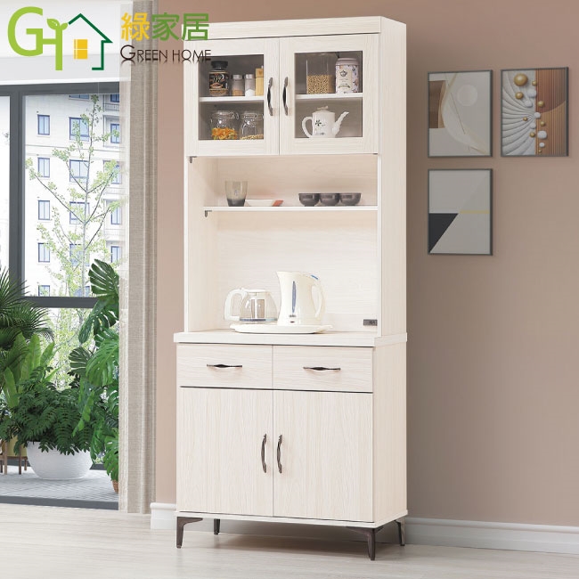 【綠家居】安特淺橡2.7尺四門二抽高餐櫃組合