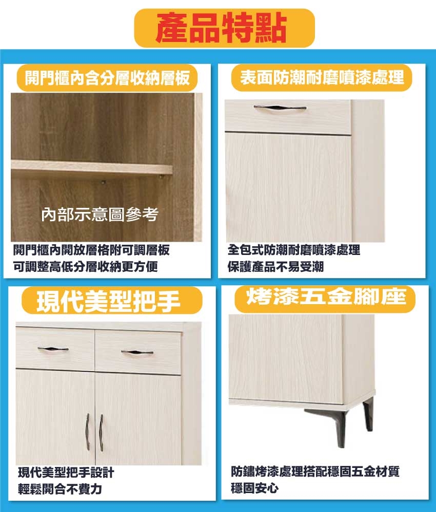 材質:防蛀木心板+五金滑軌結構+防夾手緩衝門片五金+烤漆五金腳座