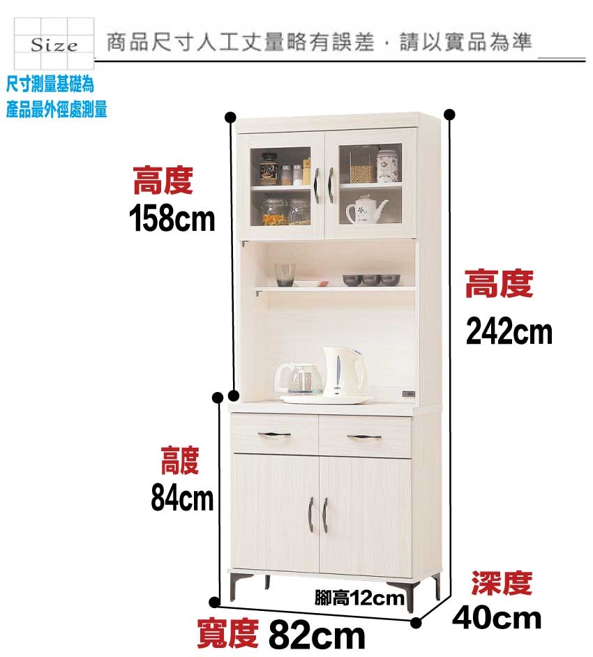 - ◆產品名稱:【綠家居】安特淺橡2.7尺四門二抽高餐櫃組合